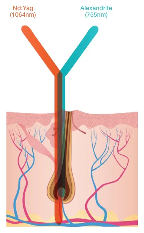 يعتمد الجهاز على تقنية الليزر المزدوج (ALEX & ND:YAG)، والتي تسمح بتخصيص العلاج وفقًا لنوع البشرة، لون الشعر، وسماكته، مما يضمن نتائج دقيقة وآمنة في وقت أقل.