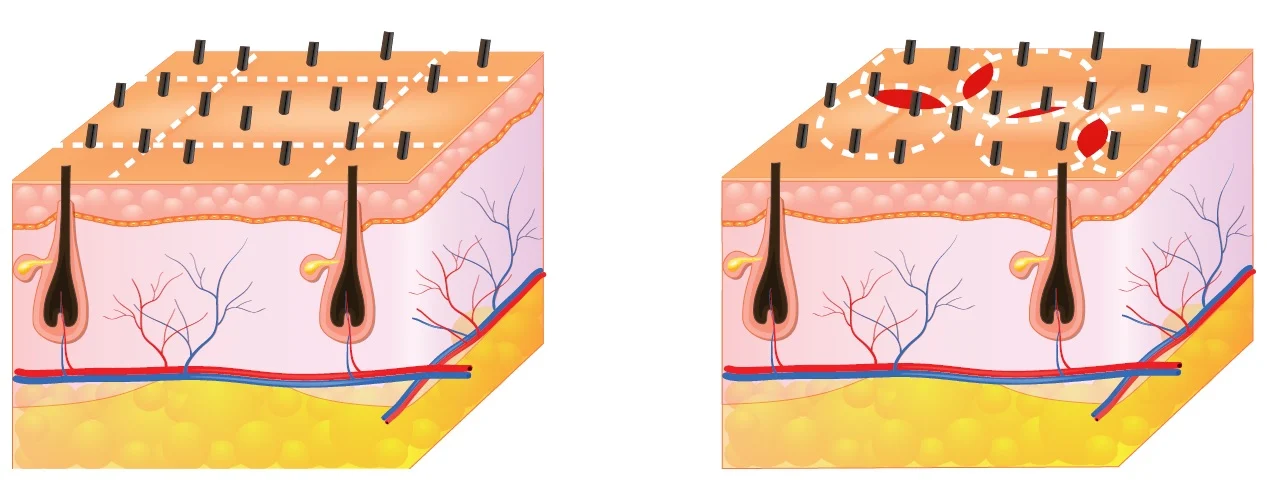 - 1064 نانومتر (Nd:YAG): مناسب للبشرة الداكنة